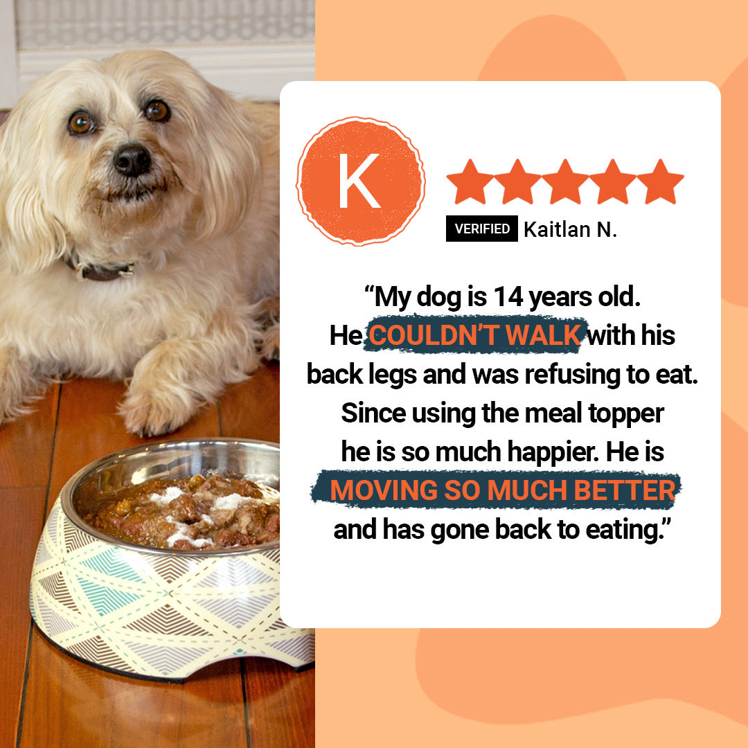 The joint meal topper has really helped our elderly dogs be more active & run around like they are pups again !